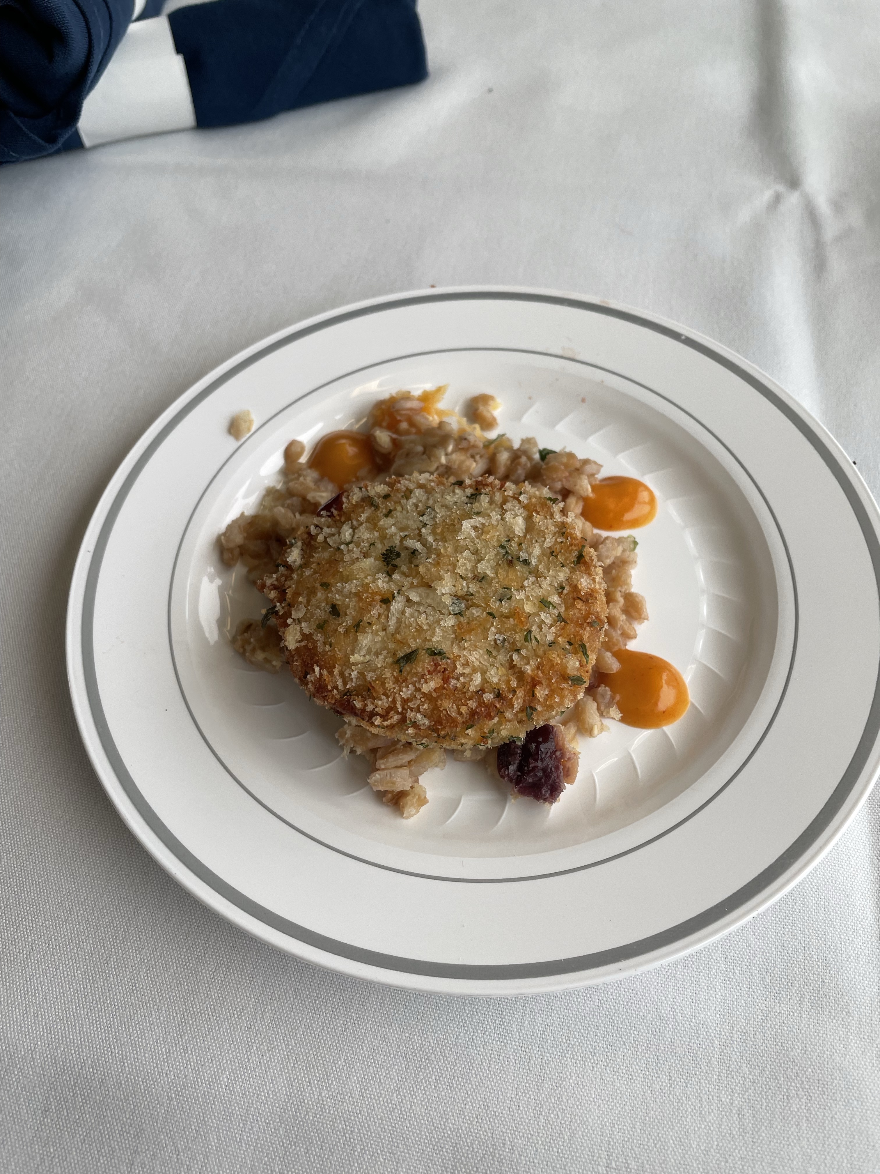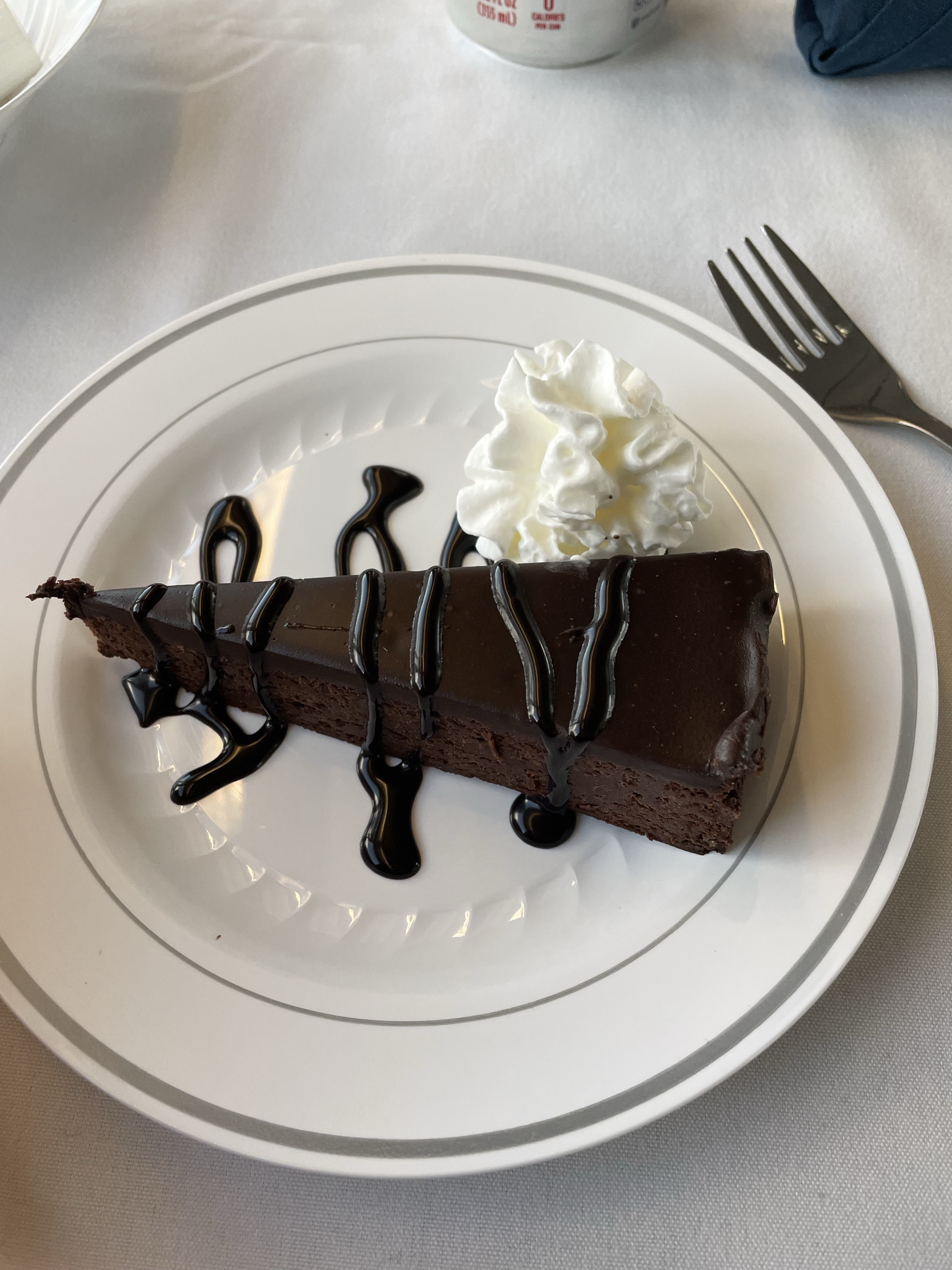 At 1730 it was time for my final dinner onboard the train, and I decided to change things slightly and went for a different main and dessert. I went for the crab cake starter, the salmon main course and chocolate torte dessert all of which were fantastic and a great way to end the day.