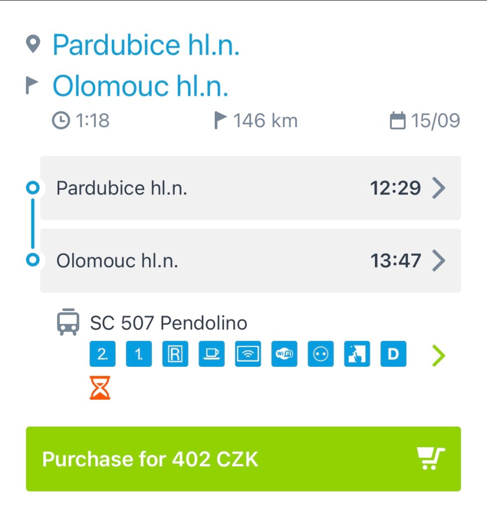 This journey cost 402czk (approximately £13), which in my opinion is exceptionally good value for a journey of this length.