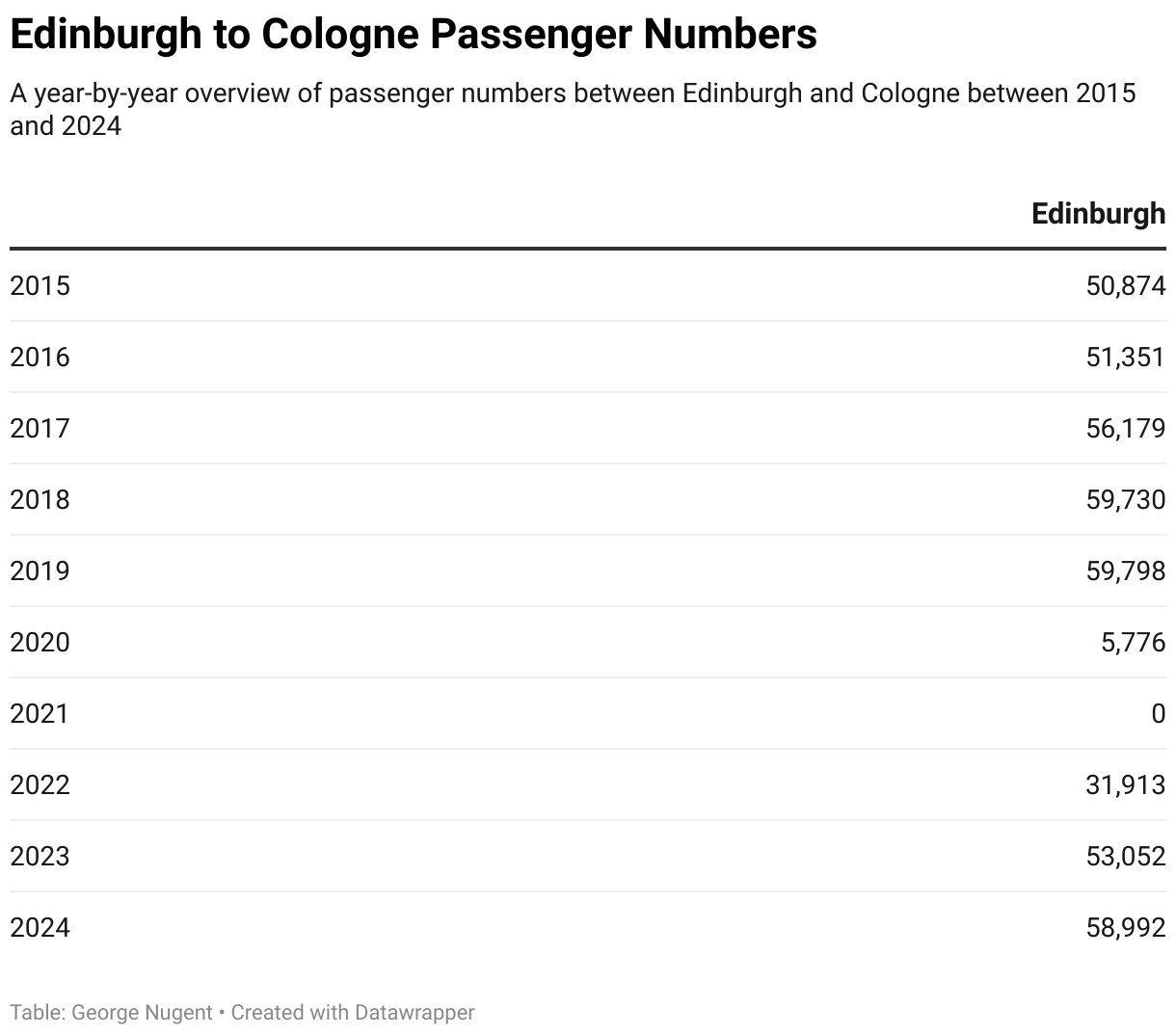 Passenger numbers in 2024 are operating at 98.65% of 2019 levels, and as already mentioned, Edinburgh is the only airport hosting Cologne as a destination.