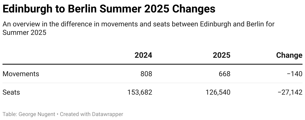 For summer 2025 no airline has announced a recovery of the Hamburg route, with Eurowings being the most likely candidate following the airlines recent growth in the Scottish capital.