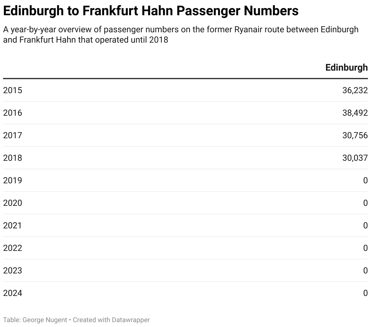 I should point out that Ryanair operated a limited number of flights from Edinburgh and Glasgow in June 2024 for the Euros, the Edinburgh passengers are included in the 2024 total as the CAA does not breakdown figures by airline. For those interested 1,001 passengers flew between Glasgow and Cologne in June 2024.