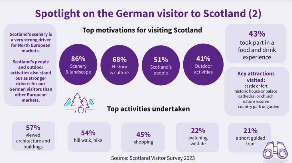 “German visitors make up our single largest European market for inbound tourism to Scotland. They are highly valued as long-staying visitors, who love to explore and who spread their spend from the cities to the furthest flung corners of Scotland.